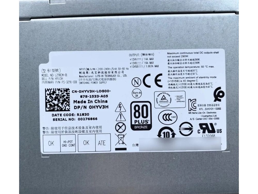 Fonte de alimentação original Dell com 290W de potência, modelo L290EM-01 e part number 0HYV3H, desenvolvida para uso em servidores, estações de trabalho ou equipamentos compatíveis que utilizem esse padrão de fonte. Este componente é ideal para ambientes corporativos, pequenos data centers e aplicações que exigem fornecimento de energia estável e confiável.