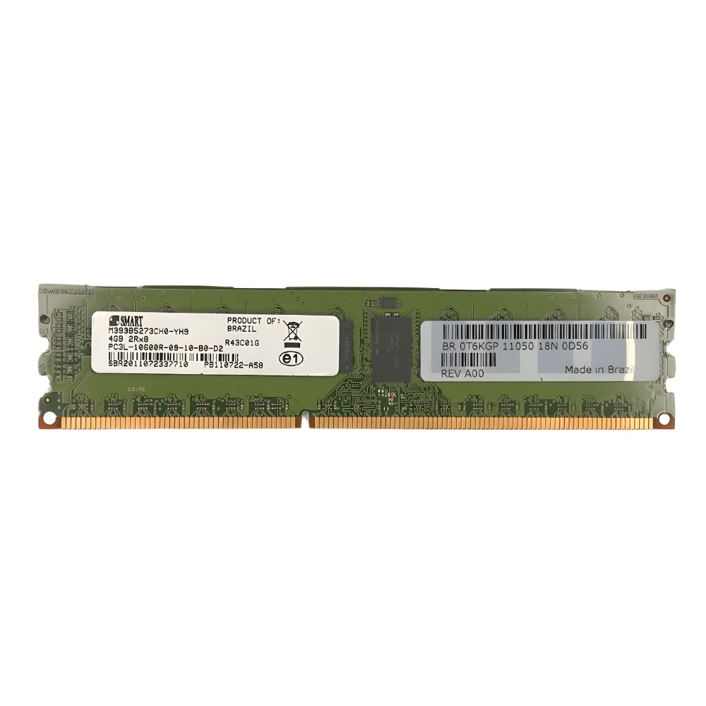 Memória Smart PC3L-10600R 4GB 2Rx8 M393B5273CH0-YH9, módulo de memória DDR3L ECC Registered projetado para uso em servidores e estações de trabalho que suportam memória registrada com correção de erros. Oferece desempenho estável e confiável, ideal para ambientes corporativos, data centers e aplicações que exigem alta disponibilidade e integridade de dados.